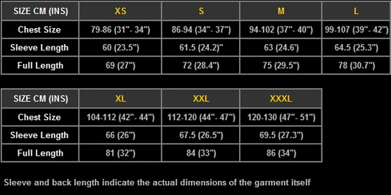- Size Chart: