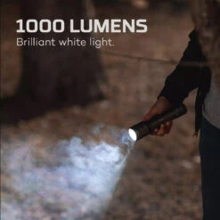 The NEWTON 1000 flashlight by NEBO is a powerful handheld flashlight with 4 light modes. The easy-touch rear positioned switch makes it a breeze to switch between modes and the powerful LED in this flashlight can light up 145 meters.
