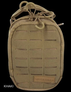 The front of the pouch features a laser cut Molle system, made from a velveteen synthetic fabric that is resistant to water and tears. Inside the front compartment is a partitioned interior that provides different storage segements to house various items, such as multi-tools and flashlights. The main compartment features a similar design of elasticated straps plus a side pocket, ideal for a small notebook. Both compartments are padded to protect the contents.