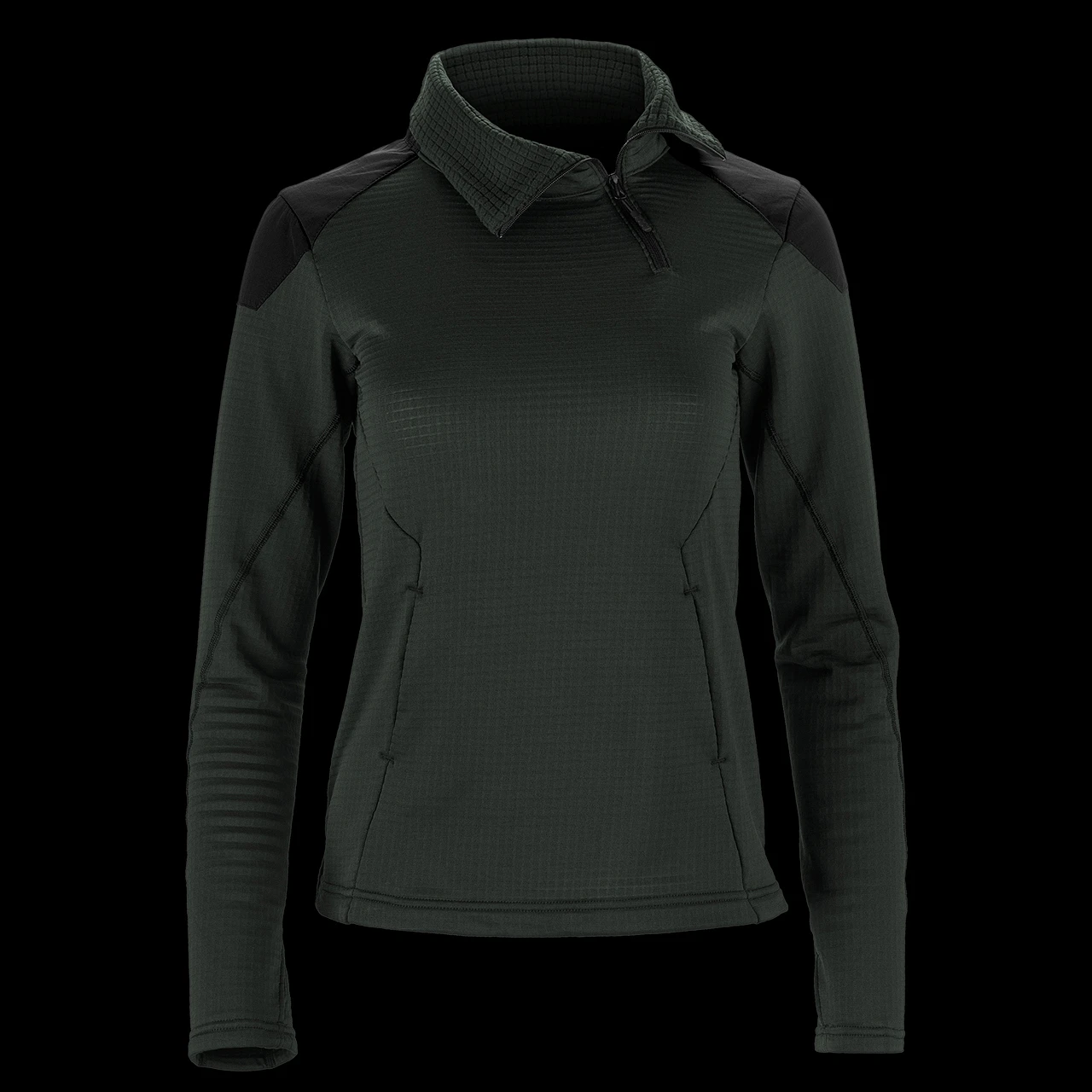 - Low-Pro Storage – A clean, on-seam kangaroo style handpocket with brushed mesh lining provides quick warmth and storage without creating hotspots or extra bulk.